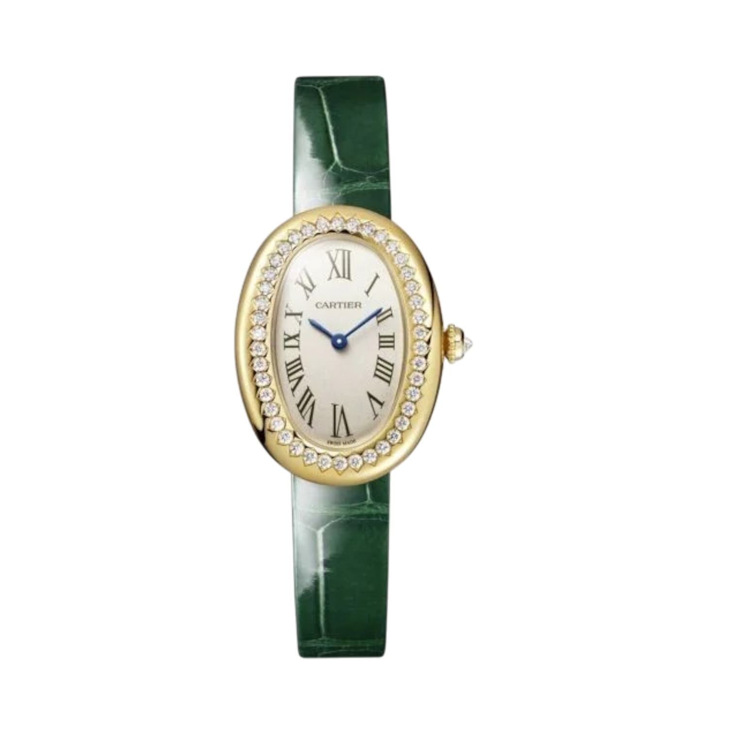 Materials Quartz movement, Varnished green alligator-skin strap