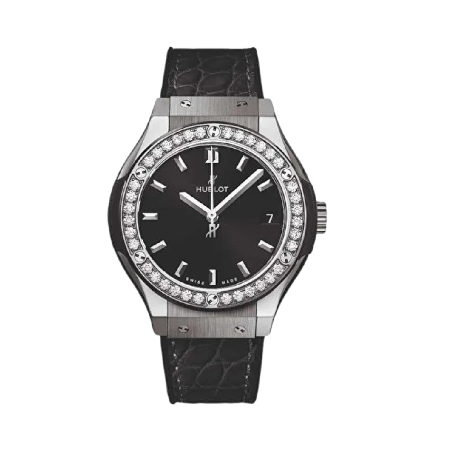 Materials 33mm, Alligator Leather Strap, Stainless Steel , Zircon