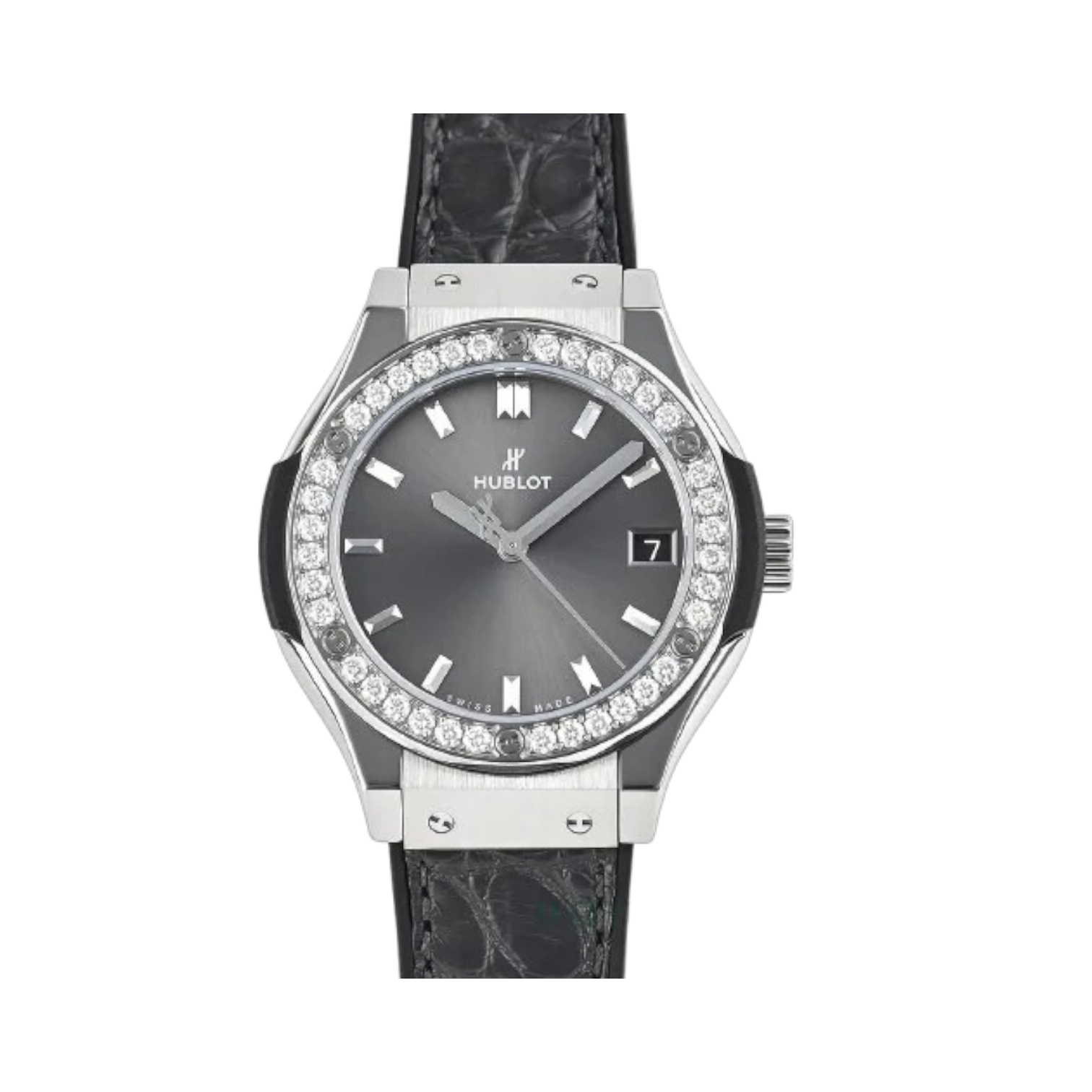 Materials 33mm, Grey Alligator Strap, Stainless Steel , Zircon