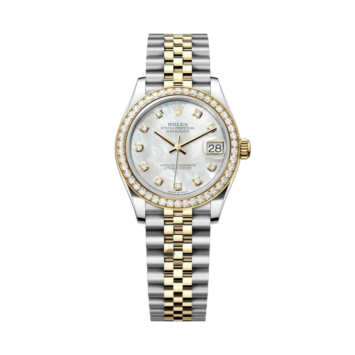 Materials Yellow & White Gold, Perpetual, mechanical, self-winding movement, Steel Size 31 mm Dial Mother-of-Pearl, Zircon