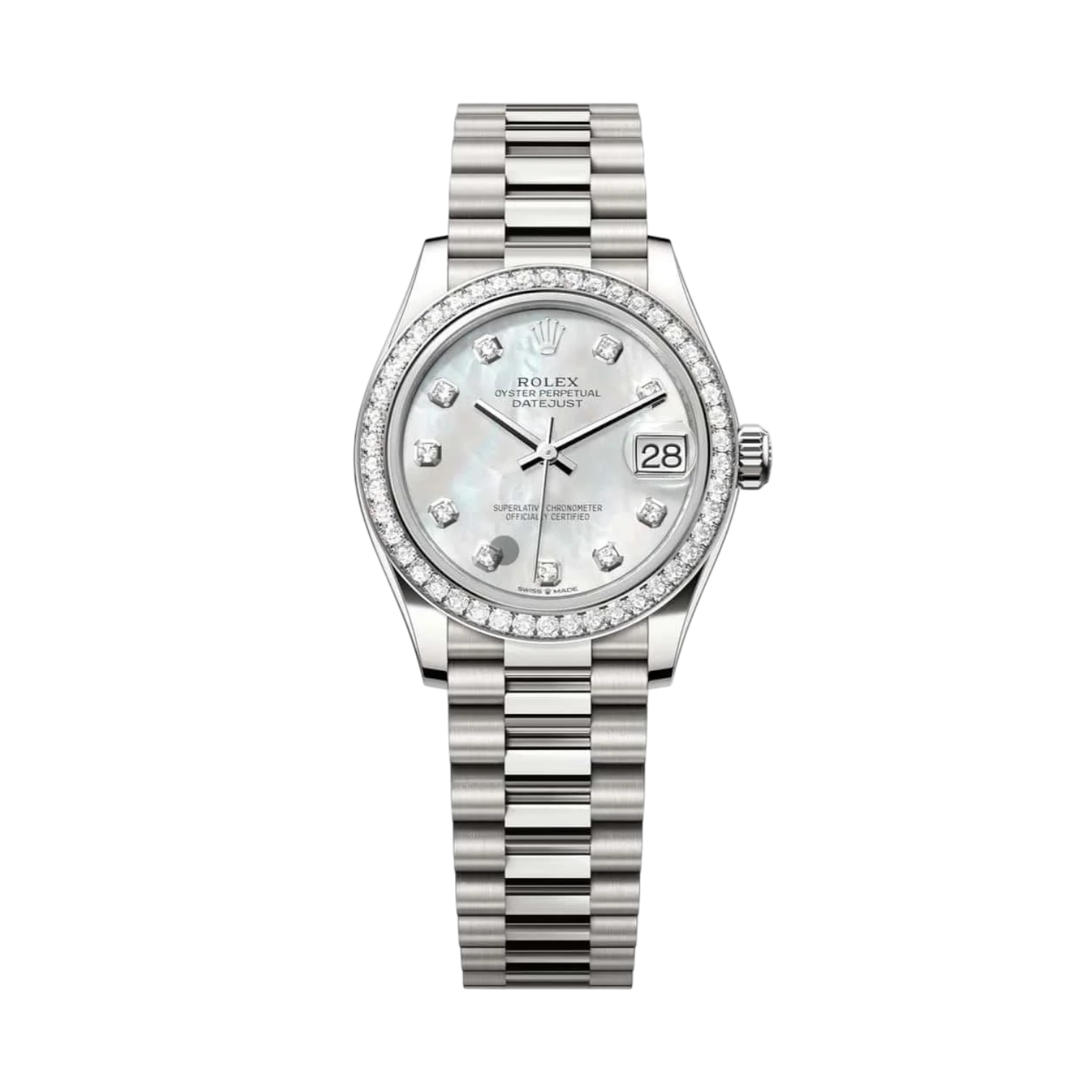 Materials White Gold, Perpetual, mechanical, self-winding movement, Steel, Zircon Size 31 mm Dial Mother of Pearl, Zircon