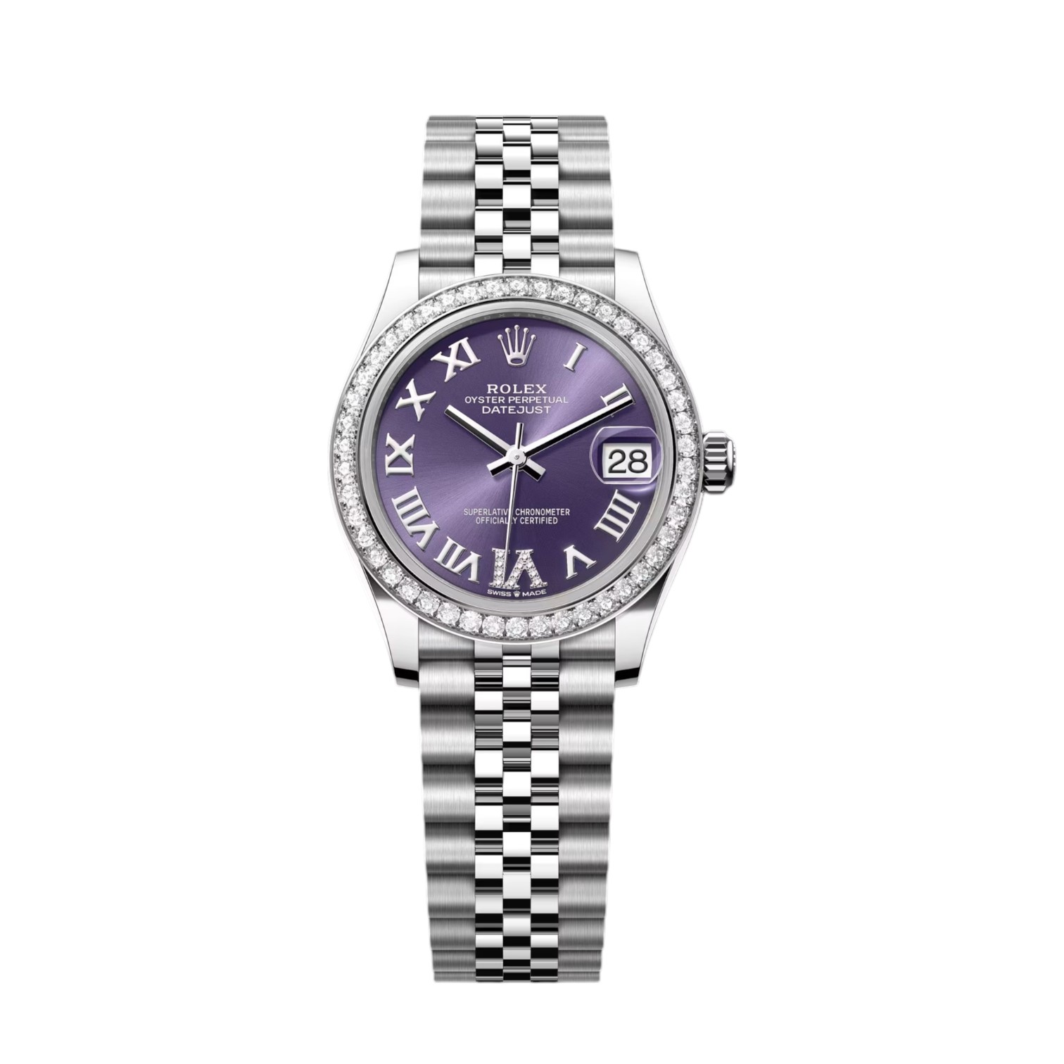 Materials White Gold, Steel, Zircon Size 31 mm Dial Purple