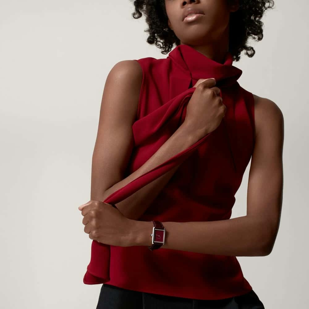 Materials Red alligator-skin strap, Steel Size 27 mm